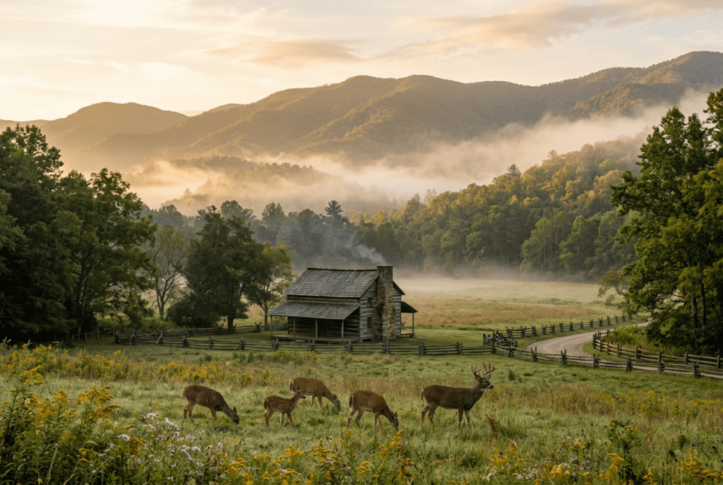 I would time the trip to arrive on a Tuesday evening in mid-October and be at Cades Cove before dawn on Wednesday morning, on foot or bicycle, before the vehicles are admitted. (Triple check that!) The meadow in the early light, the historic structures in the mist, the deer in the open fields before the loop road fills with cars. That is the first image I want from this park, and it requires the specific Wednesday or Saturday morning window to find it.