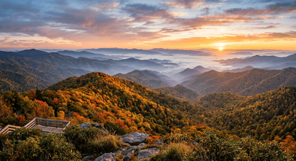 Gatlinburg is the primary base for most visitors. It’s a walkable resort town immediately outside the Sugarlands entrance with a full range of lodging from chain hotels to cabin rentals on the forested hillsides above town. The cabin rentals, particularly those with mountain views on the ridges above Gatlinburg, provide the elevated perspective and the sense of place that the town-center hotels cannot. Pigeon Forge, a few miles north, is more developed and less charming but has broader availability and lower prices. Townsend, on the quieter western side of the park near the Cades Cove entrance, offers a completely different and more tranquil base camp experience.