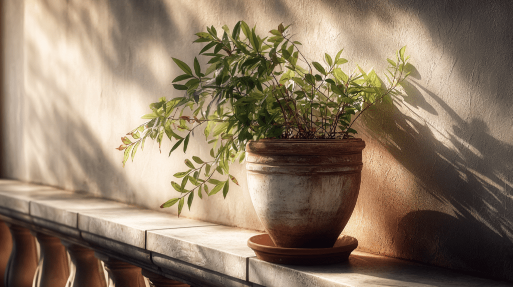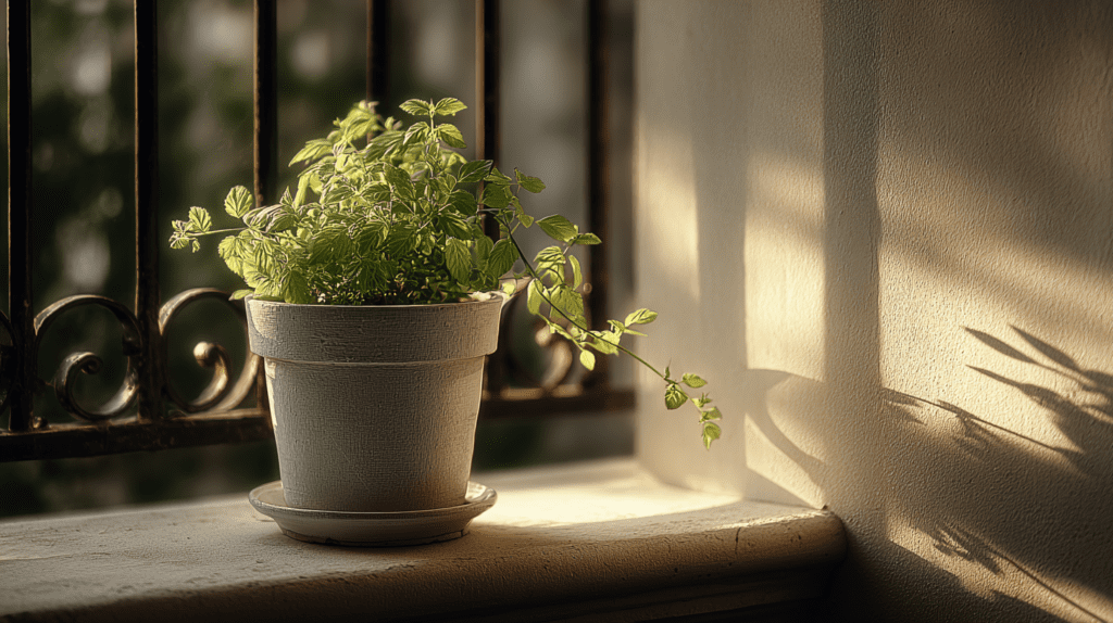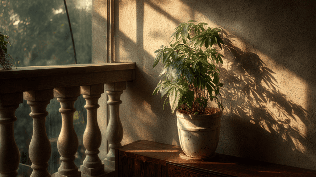 I look at the wall behind the plant on my balcony most mornings. It’s become a kind of daily calibration… a thirty-second read of what kind of light is available and what it might be good for.